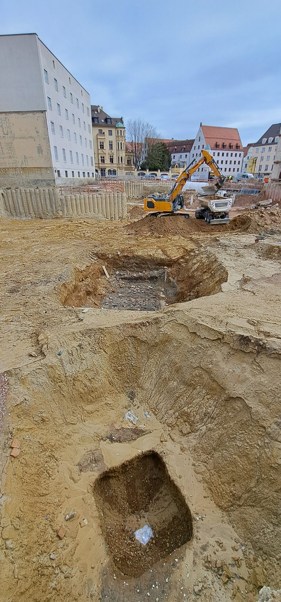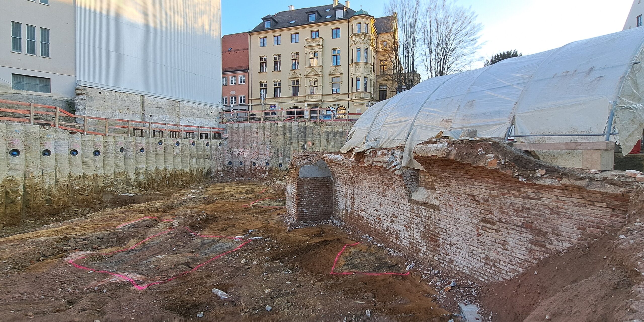 Die flächigen Ausgrabungen im nördlich der Kasernstraße gelegenen Bauabschnitt sind im Herbst 2025 bis in eine Tiefe von ca. 5 m abgeschlossen worden.